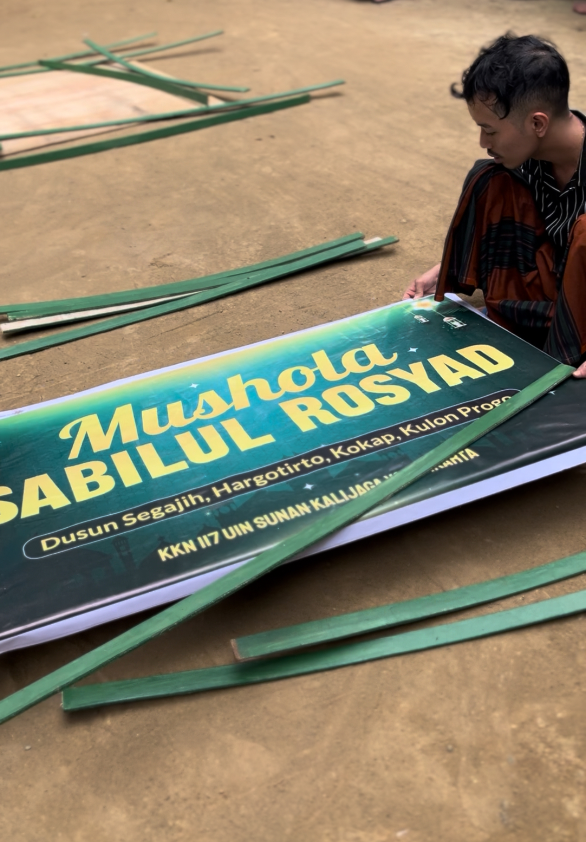 Menyelesaikan proker pembuatan papan nama mushola dan tahlilan di rumah pak dukuh.